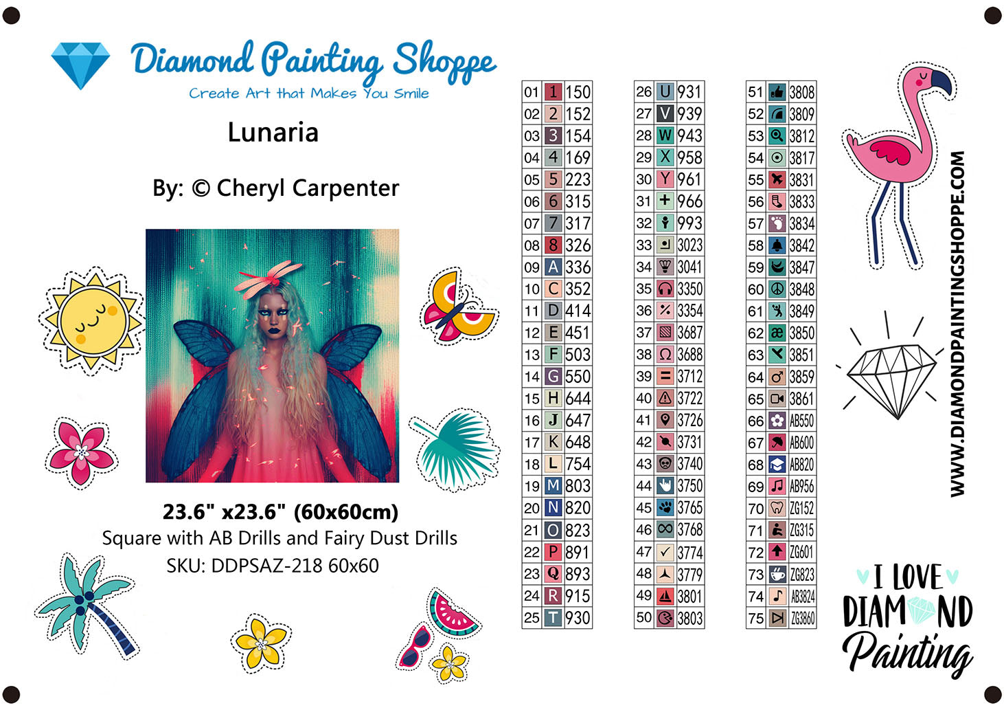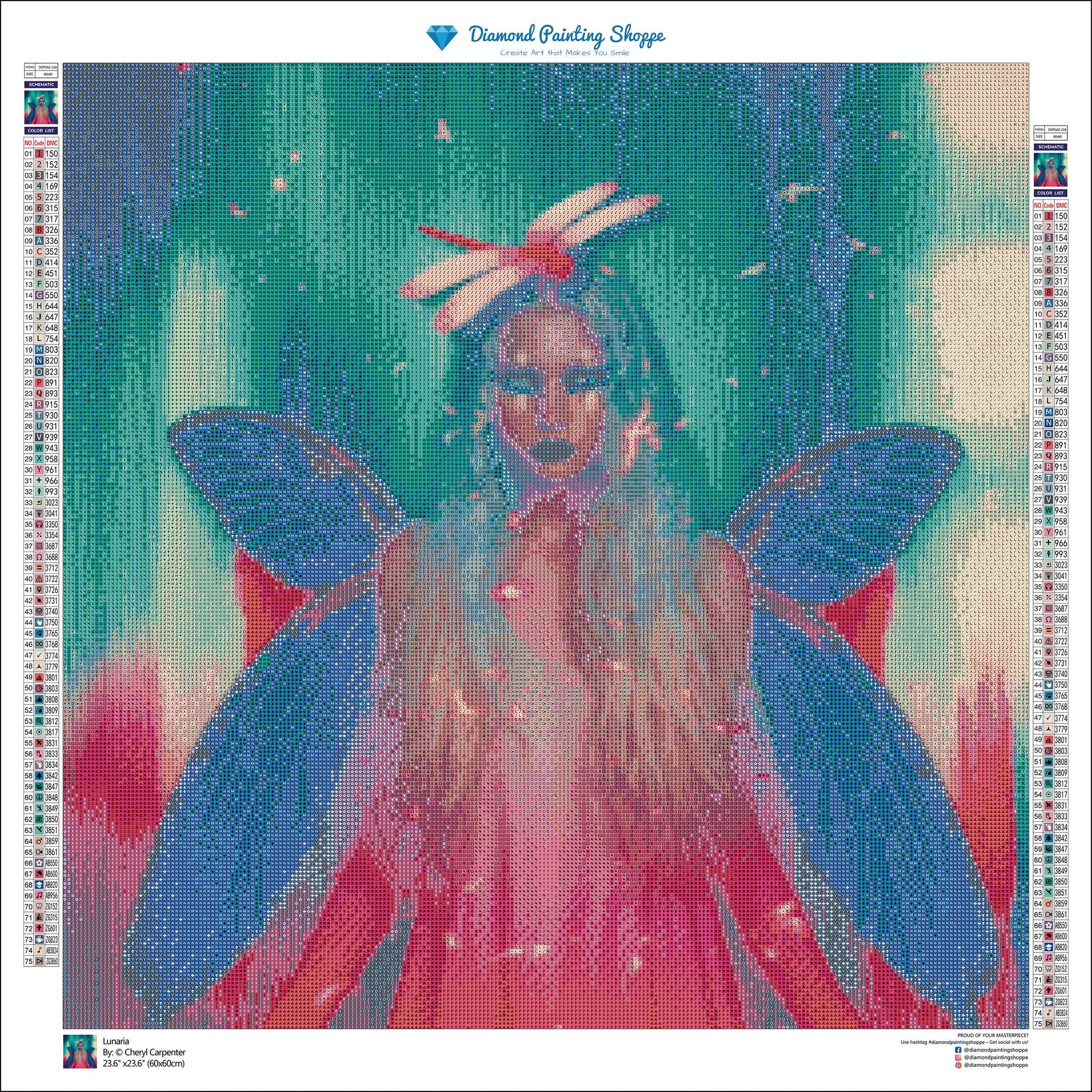 Step into a world of fantasy with "Lunaria" diamond painting kit from Diamond Painting Shoppe! This beguiling artwork features a mystical fairy with flowing platinum hair, deep blue wings, and haunting golden eyes, crowned by a vivid, glowing dragonfly. Splashes of bright pink petals and a shimmering, dreamlike background make this piece truly magical. Perfect for fantasy lovers, fairy art collectors, and crafters seeking a spellbinding project, this diamond art kit will dazzle and delight. Bring home your very own piece of the enchanted realm and let your creativity sparkle!