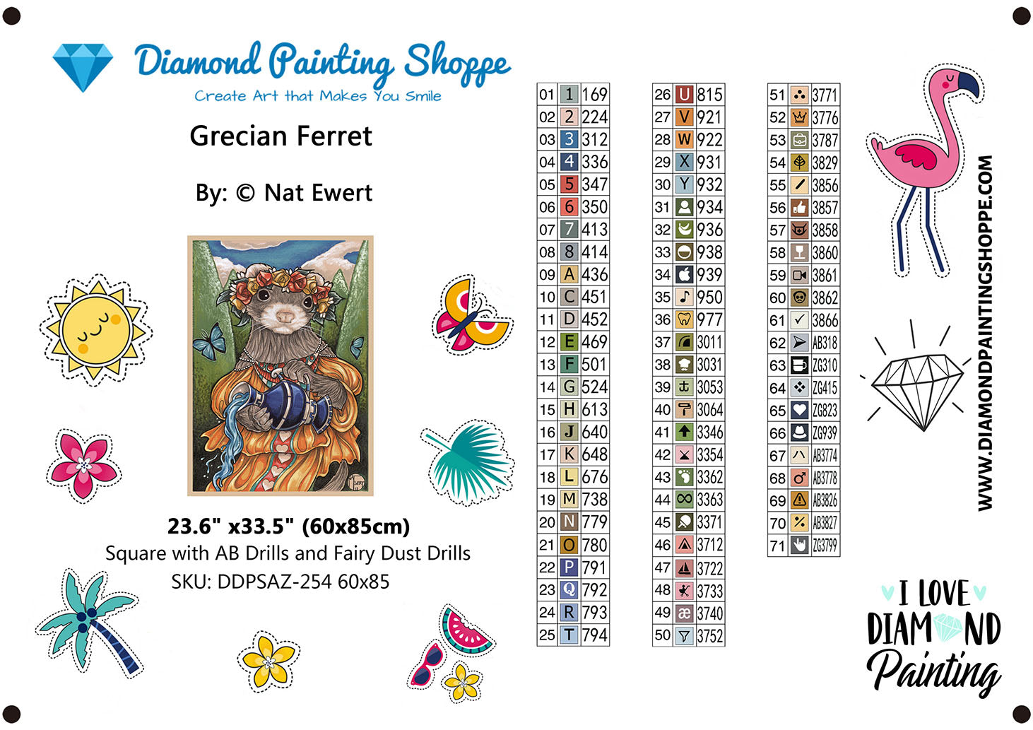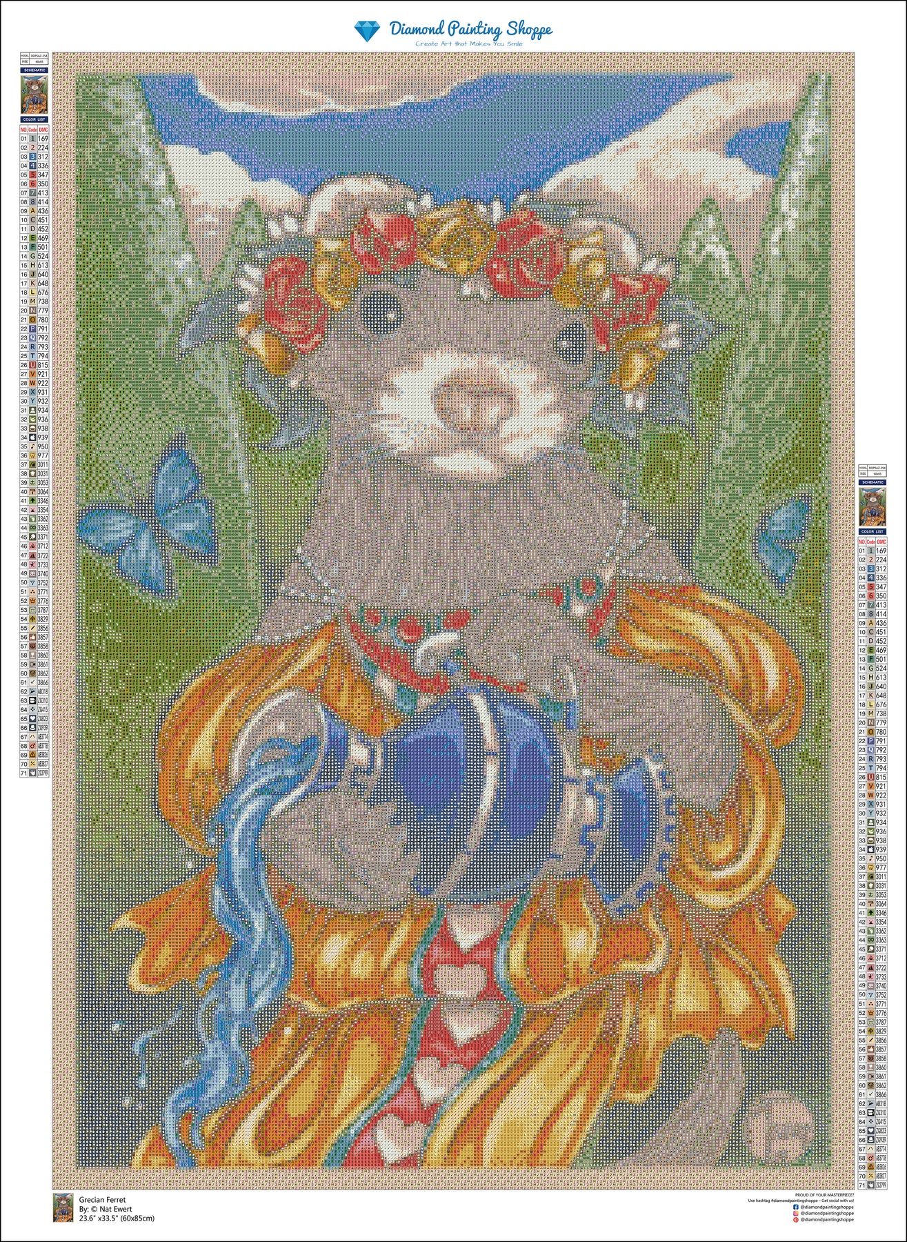 Perfect for lovers of classical art with a whimsical twist, Grecian Ferret offers a joyful, relaxing diamond painting experience and a finished piece that feels timeless yet fun.