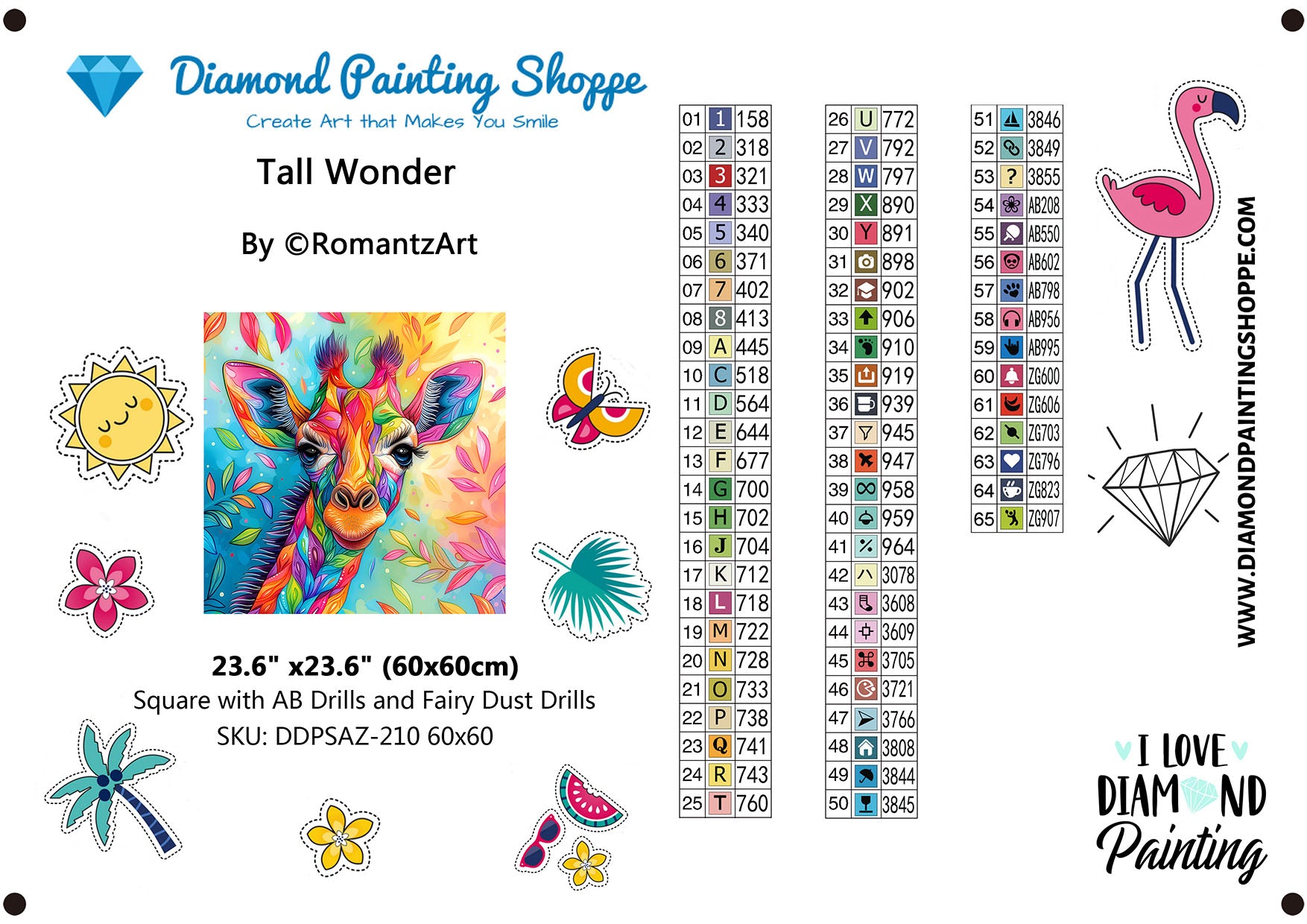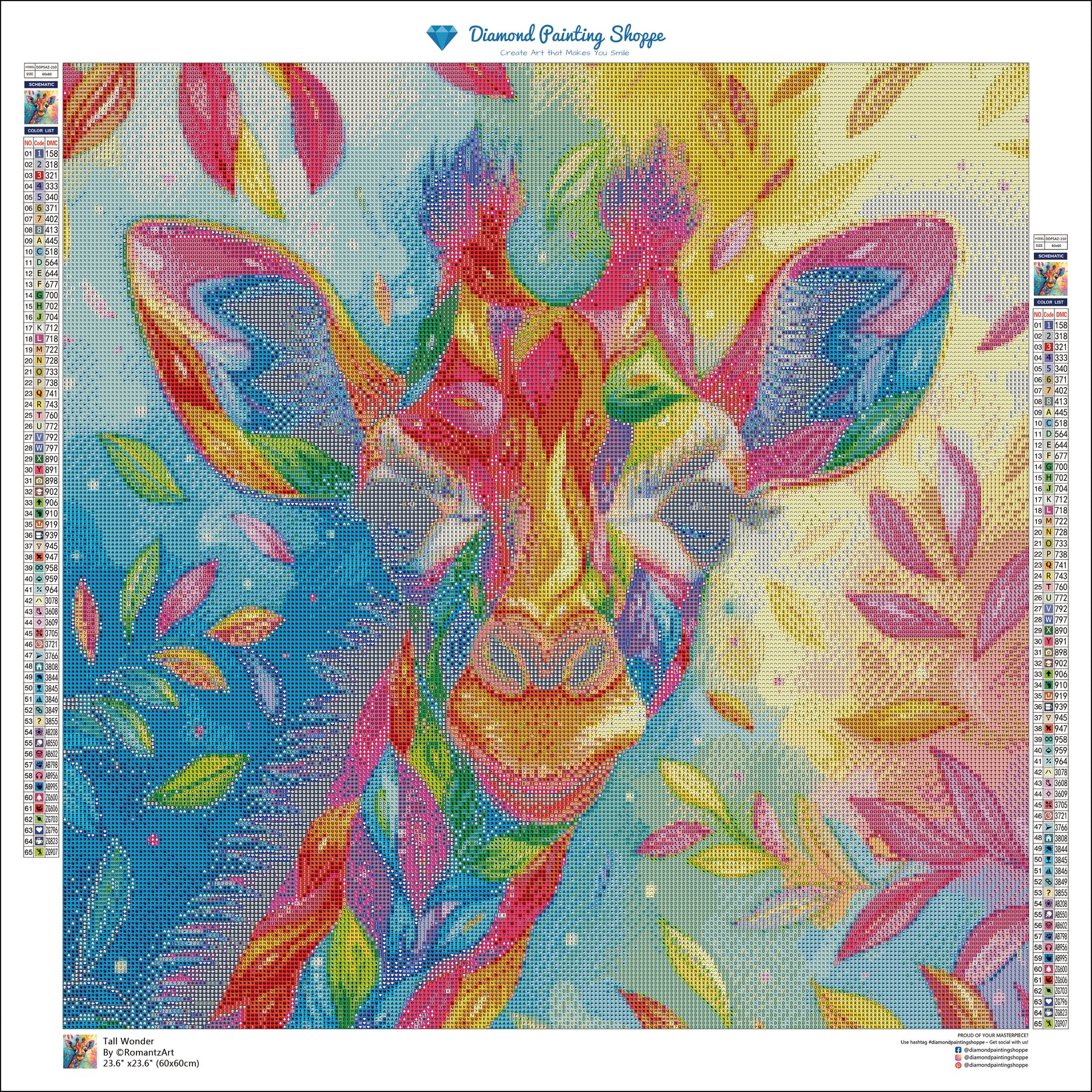 Add a splash of magic to your space with “Tall Wonder” – a diamond painting kit unlike any other! This mesmerizing giraffe portrait fuses imagination and elegance into a vivid spectrum of color. With every sparkling gem you place, you’ll bring to life a tall, whimsical majesty draped in rainbow leaves and joyful expression. Perfect for craft lovers and art collectors alike, “Tall Wonder” transforms your quiet moments into meditative bursts of creativity.